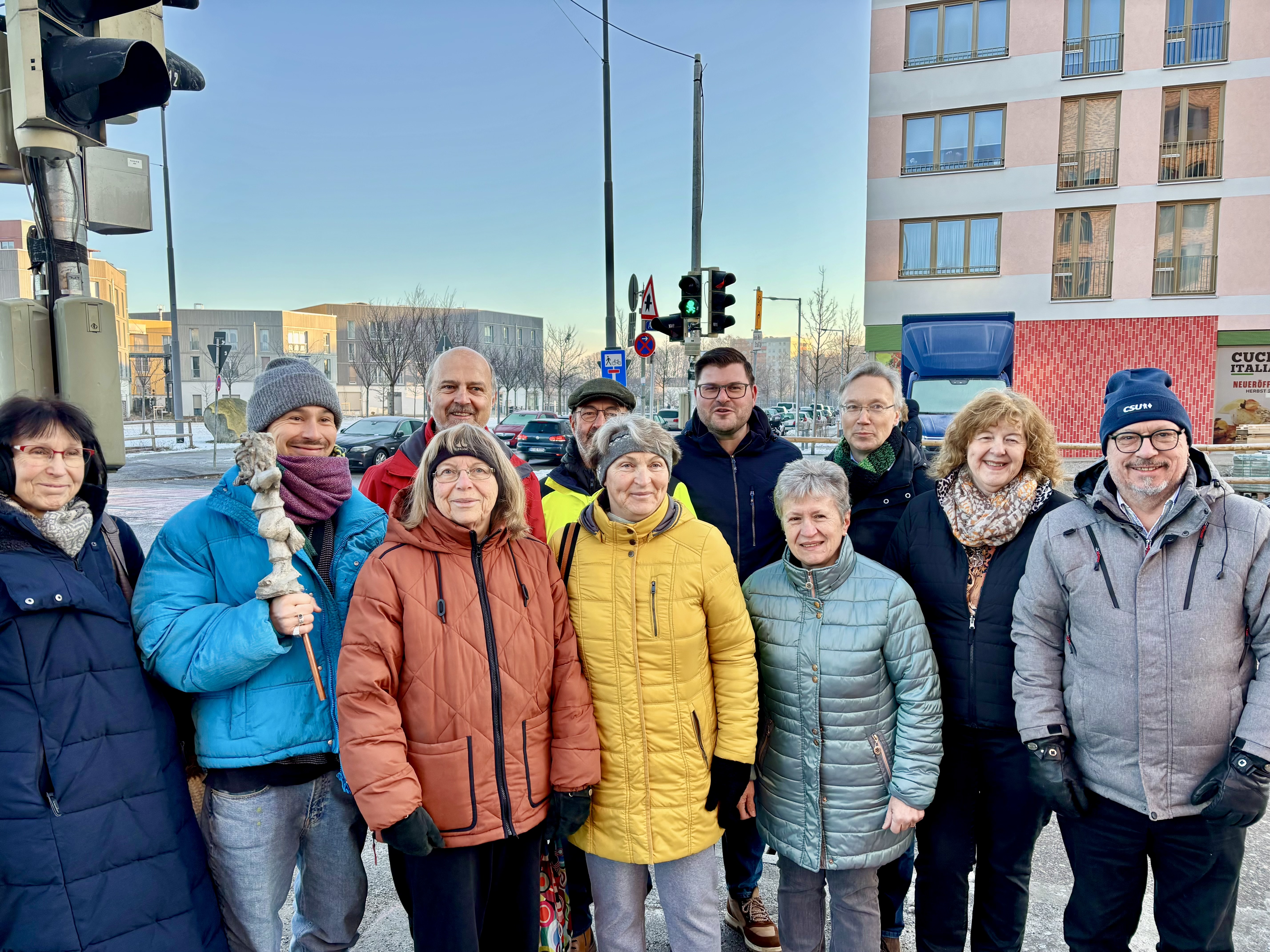 Auch Stadtteilmanager Petrich kommentierte die Ampel-Einweihung. „Immer, wenn man hier vorbeikommt, kann man sich freuen. Wenn es rot ist, kann man den Pumuckl ein bisschen länger sehen. Wenn es grün ist, dann freut man sich, weil man schnell weiterkann“, erklärte er das Ampelvergnügen.