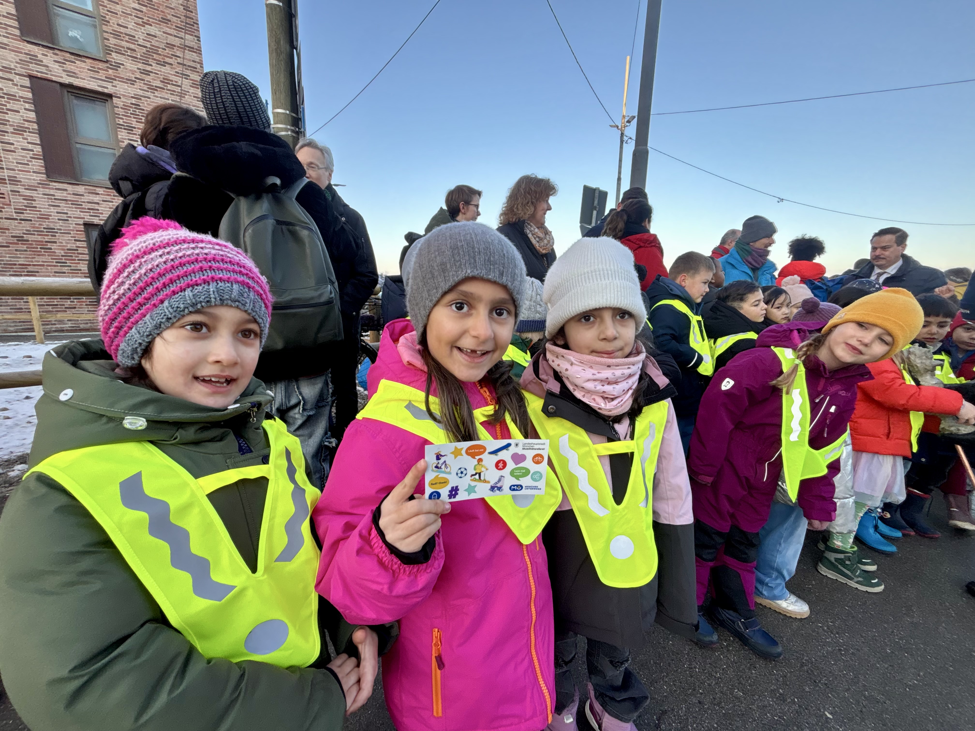 Für die Erstklässler ging es danach zurück in die Schulen, gut ausgestattet mit selbstleuchtenden Aufklebern für die Schulranzen, die vom Mob.-Referat zur Verfügung gestellt wurden. „Das ist alles sehr aufregend für uns“, so Schulleiterin Susanne Lehner für die Kinder und Lehrkräfte. „Vielen Dank!“